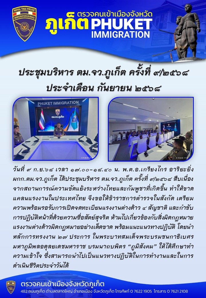 Phuket Immigration News : Phuket Immigration will be close on 11-13 October 2025 (His Majesty King Bhumibol Adulyadej The Great Memorial Day) and 23 October 2025 (King Chulalongkorn Memorial Day) --- NOTIFICATION OF RESIDENCE FOR FOREIGNERS ONLINE --- Please update your password before logging in.