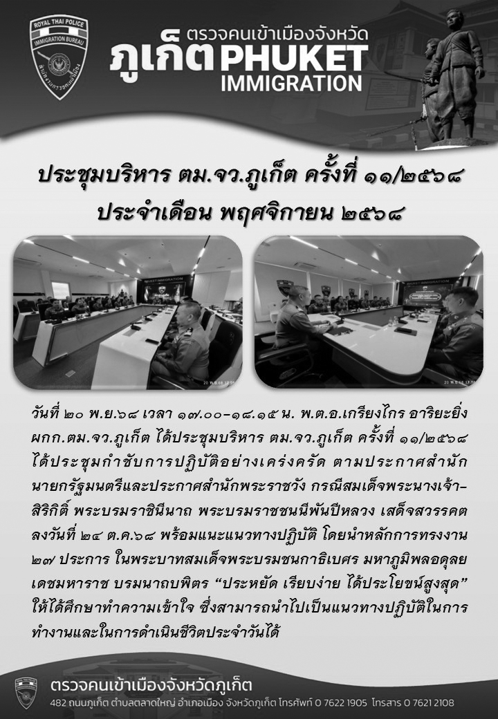 Phuket Immigration News : Phuket Immigration will be close on 5-7 December 2025 (His Majesty King Bhumibol Adulyadej The Great’s Birthday), 10 December 2025 (Constitution Day) and 31 December 2025 - 4 January 2026 (New Year) --- NOTIFICATION OF RESIDENCE FOR FOREIGNERS ONLINE --- Please update your password before logging in.